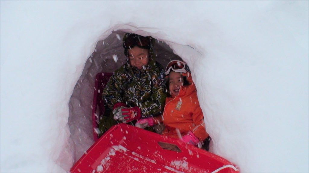 <かまくら>を空き地で子どもたちと作って遊んだ。