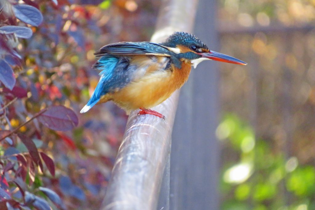 10分程経ったところで、2羽のカラスが近付いてくると、チョウゲンボウが慌ててくわくわ森傍の電柱に避難したところ、別のチョウゲンボウがこの森から現れる。頭部が灰色なので雄と言うことになるが、どうやら助っ人のようで、雄が森に戻った後の電柱に、以前のチョウゲンボウが翅を休めているので、夫婦のように思える。ここから見晴らしの丘を経て、元来た俣野公園に戻る。俣野公園に到着すると、池の石垣にはカワセミが留まっており、本日は二度も出会えたことになる。
